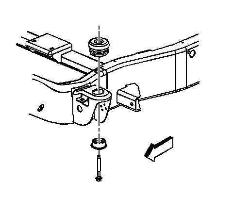7. Install the body mount bolt, retainers, and lower cushions at the front mount location.