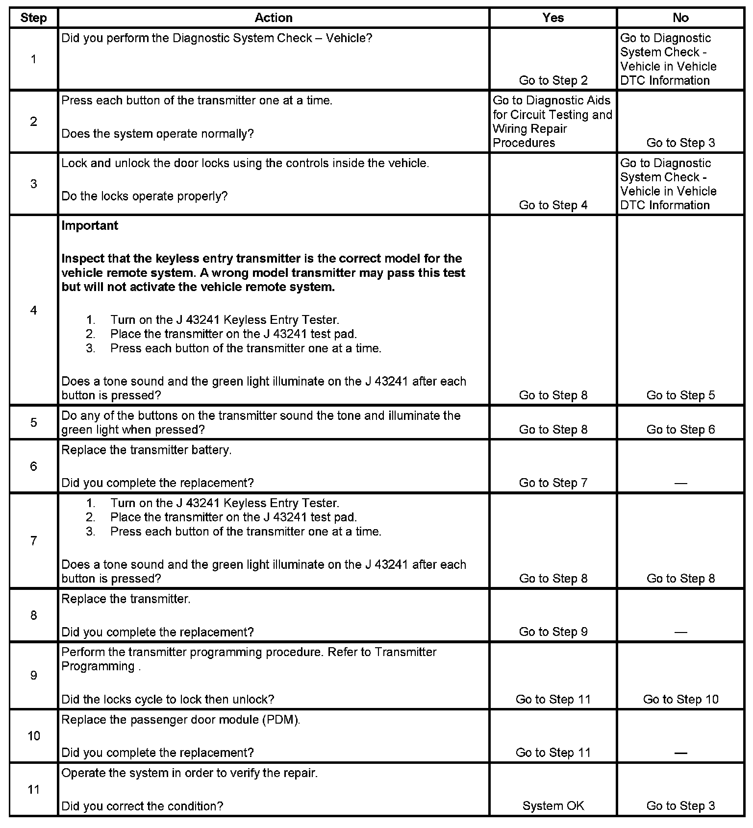 Keyless Entry System Inoperative