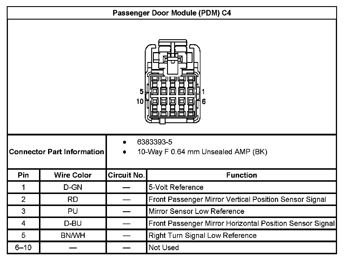 Passenger Door Module (PDM) C5 (Passenger Heated Seat Switch):