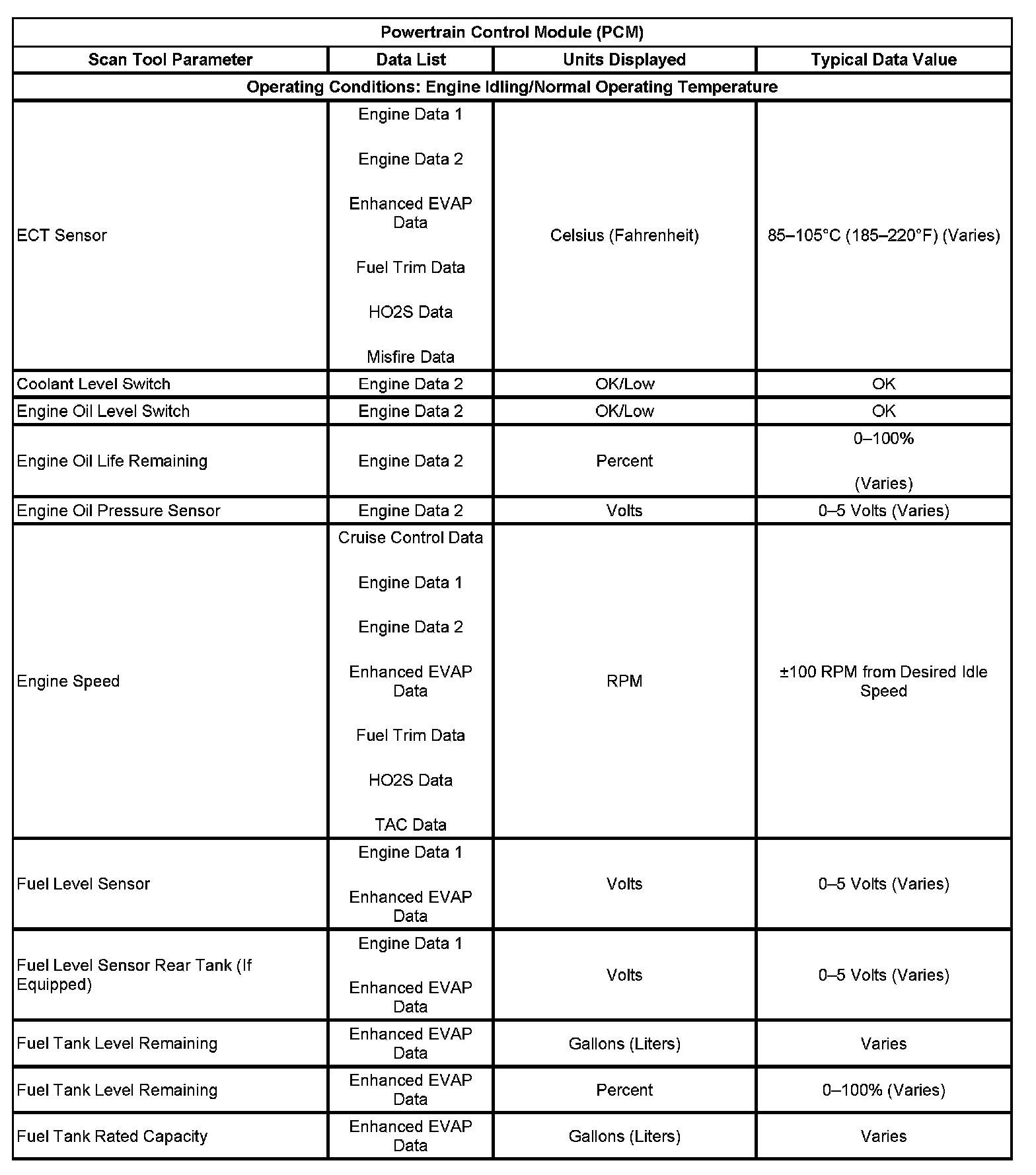 Scan Tool Data List