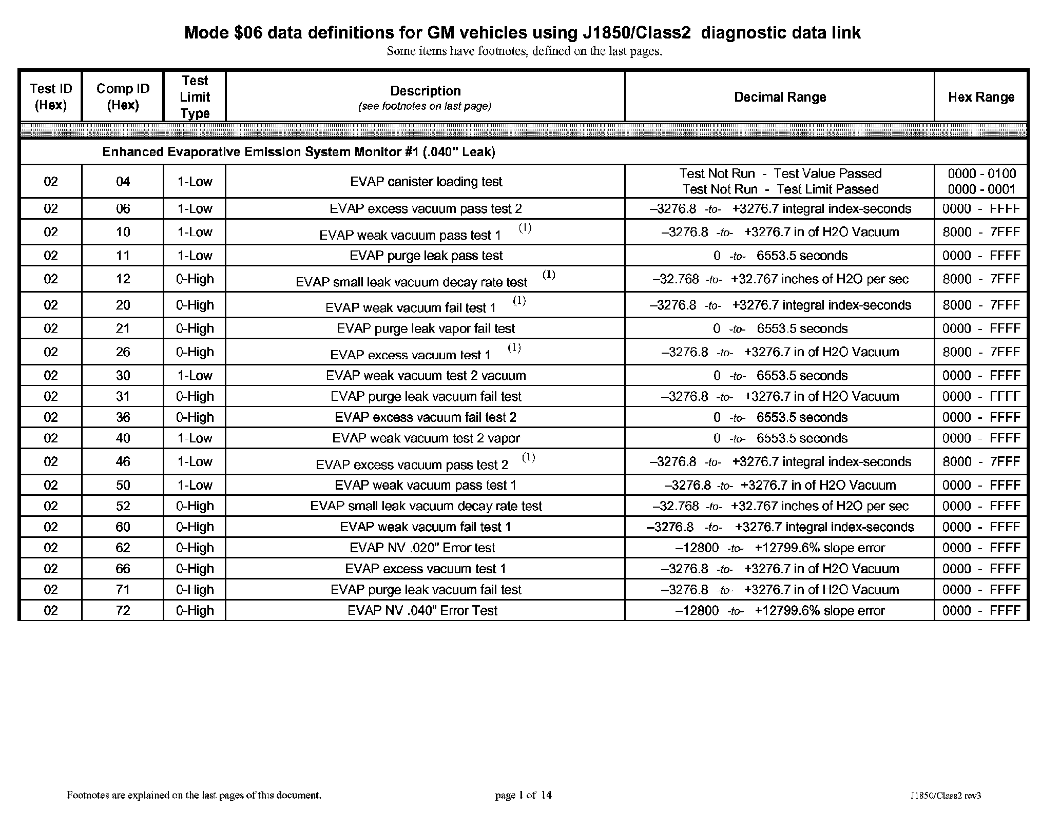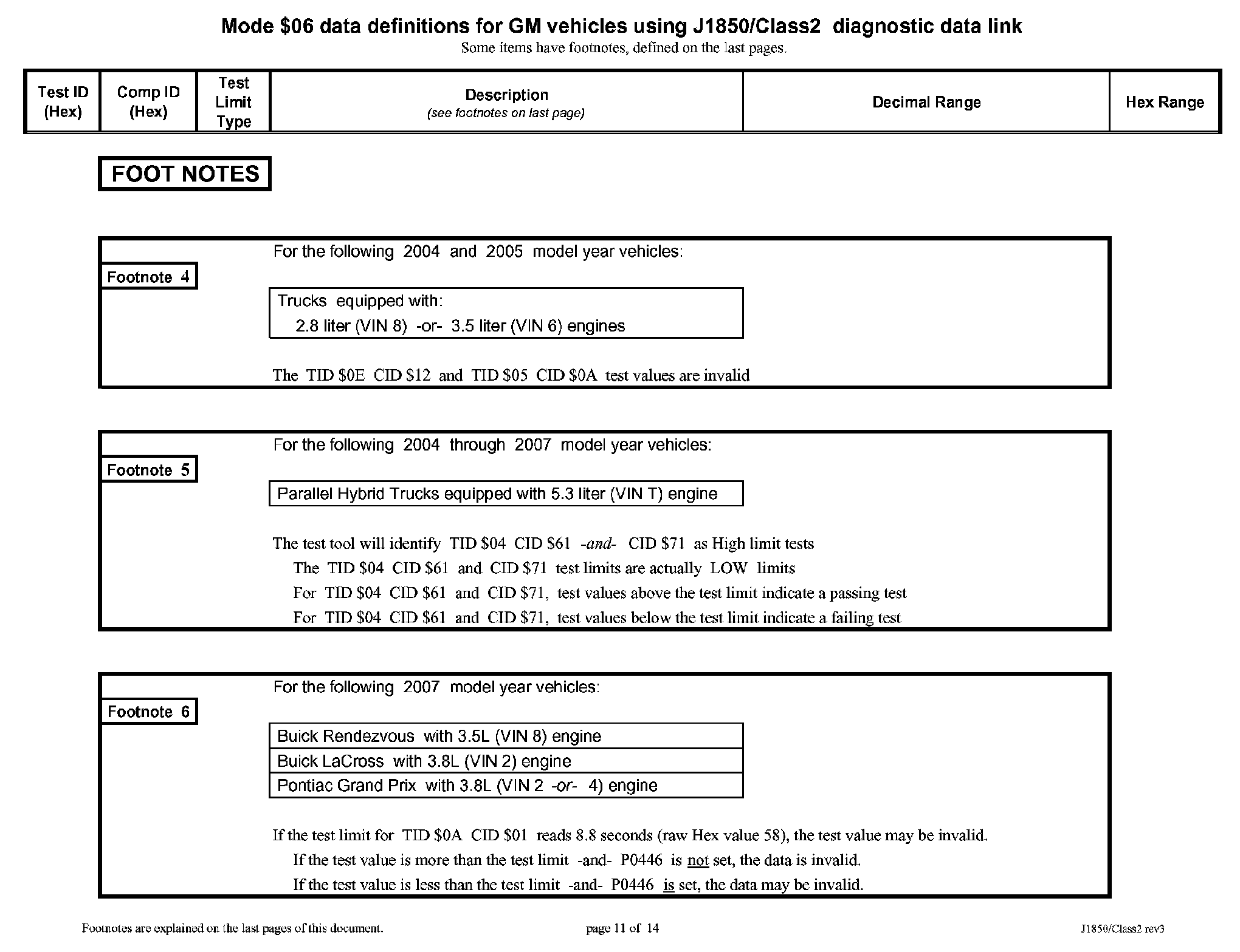 Mode $06 Data Vehicles With Class 2 Diagnostic Data Link