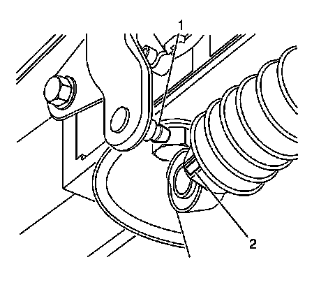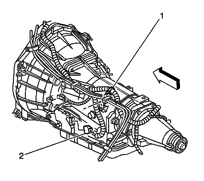 6. Remove the range selector cable end (2) from the range selector lever ball stud (1).