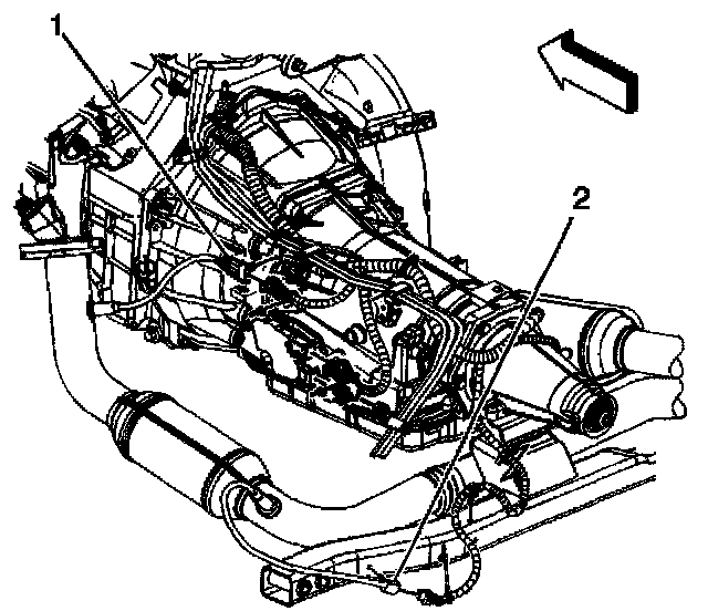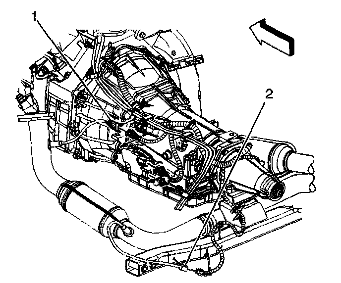12. Disconnect the oxygen sensor electrical connectors (1, 2).