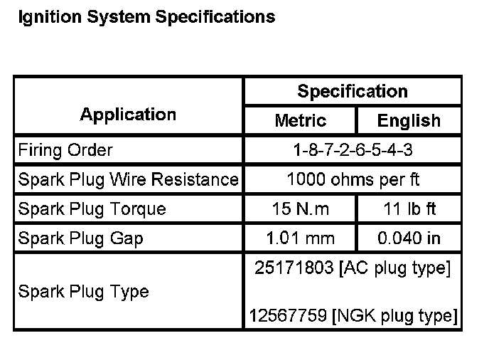 Ignition System Specifications: