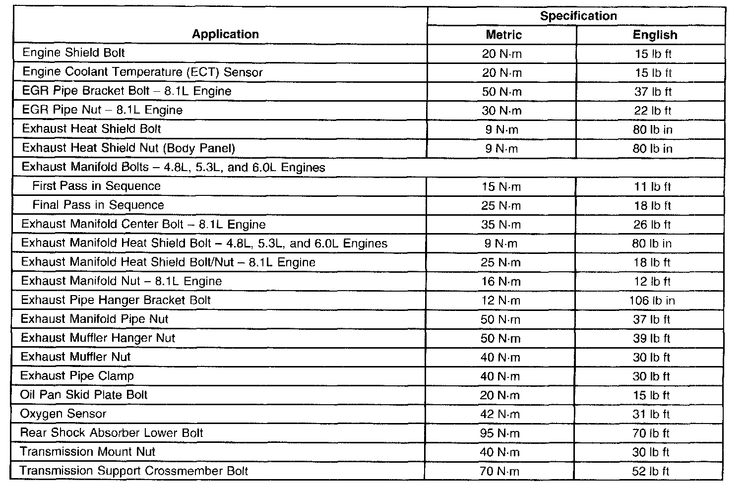 Fastener Tightening Specifications