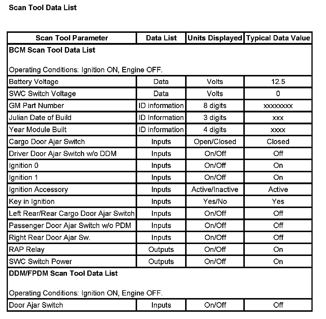 Scan Tool Data List: