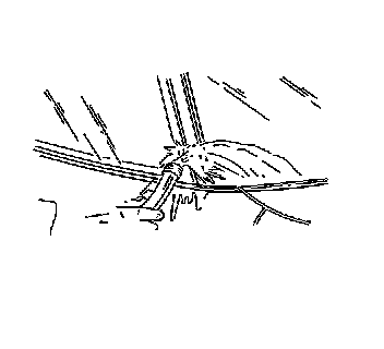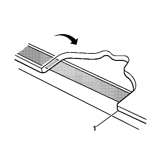 Important: Do not apply the black #3 primer to the existing bead (1) of the urethane adhesive on the pinch-weld flange. Apply the primer only to nicks, scratches or the primed surfaces.