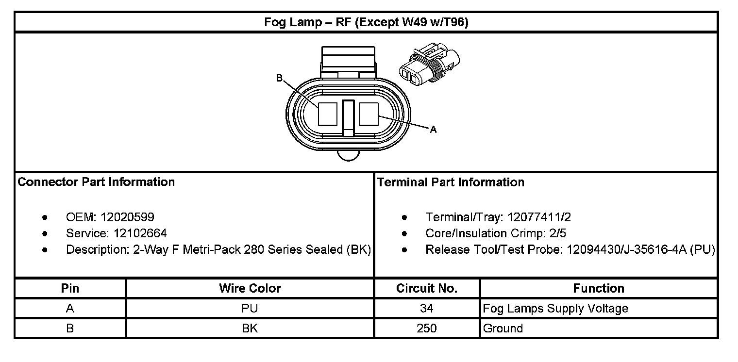 Fog Lamp - RF (With RPO Code W49 And T96):