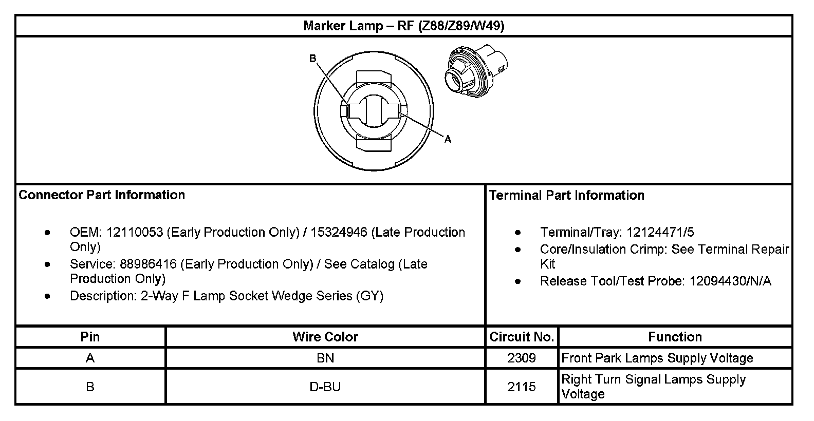 Marker Lamp - RF (With RPO Code Z88/Z89/W49):