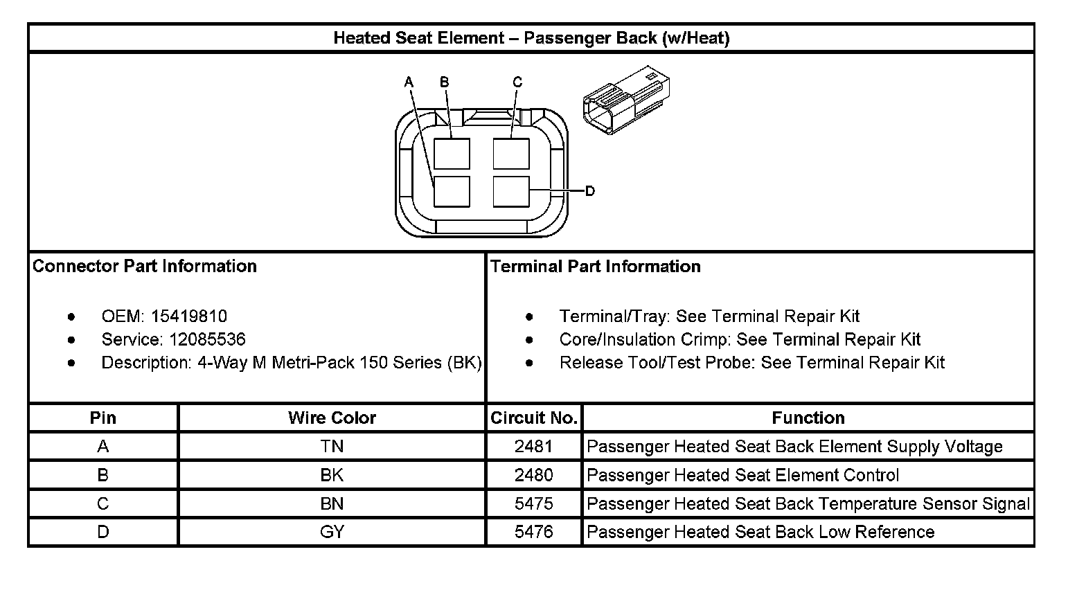 Heated Seat Element - Passenger Back (w/Heat):