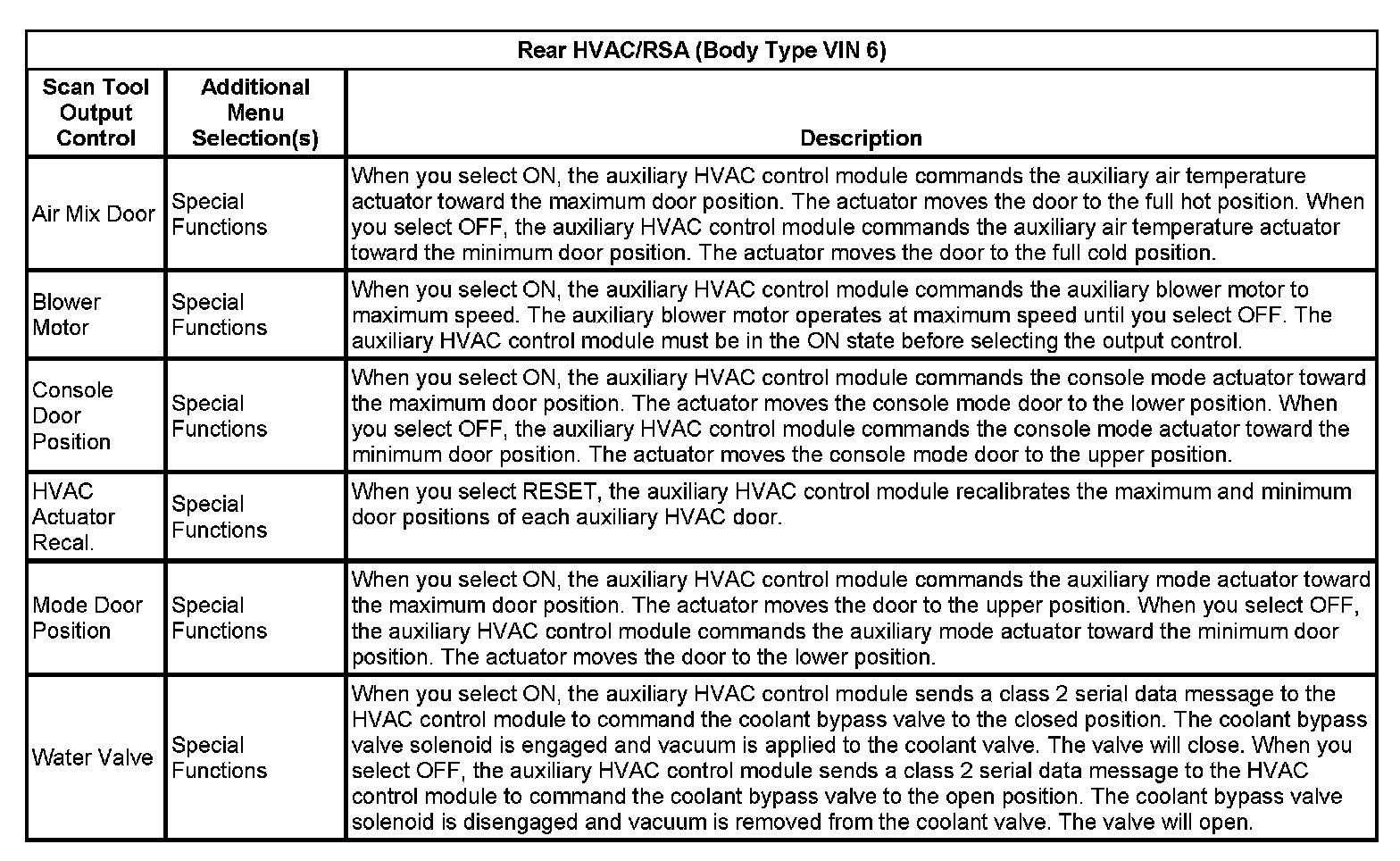 Rear HVAC/RSA (Body Type VIN 6):