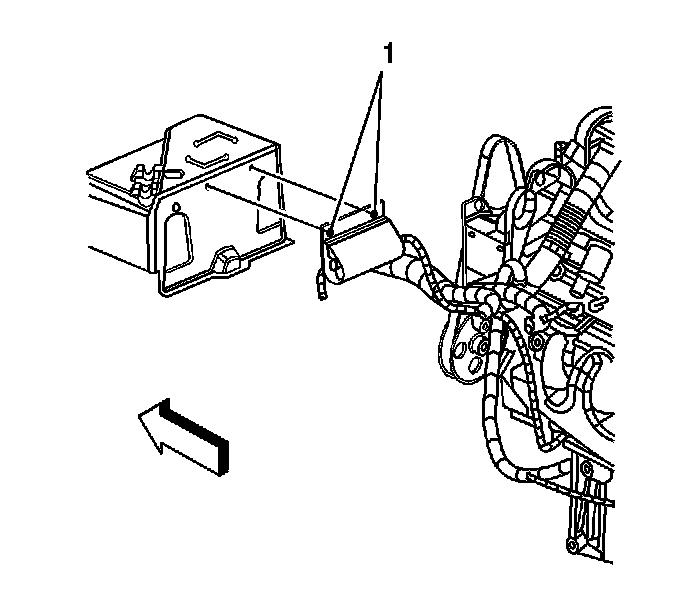 4. Remove the coolant heater cord retainers (1) from the battery cover, if equipped.