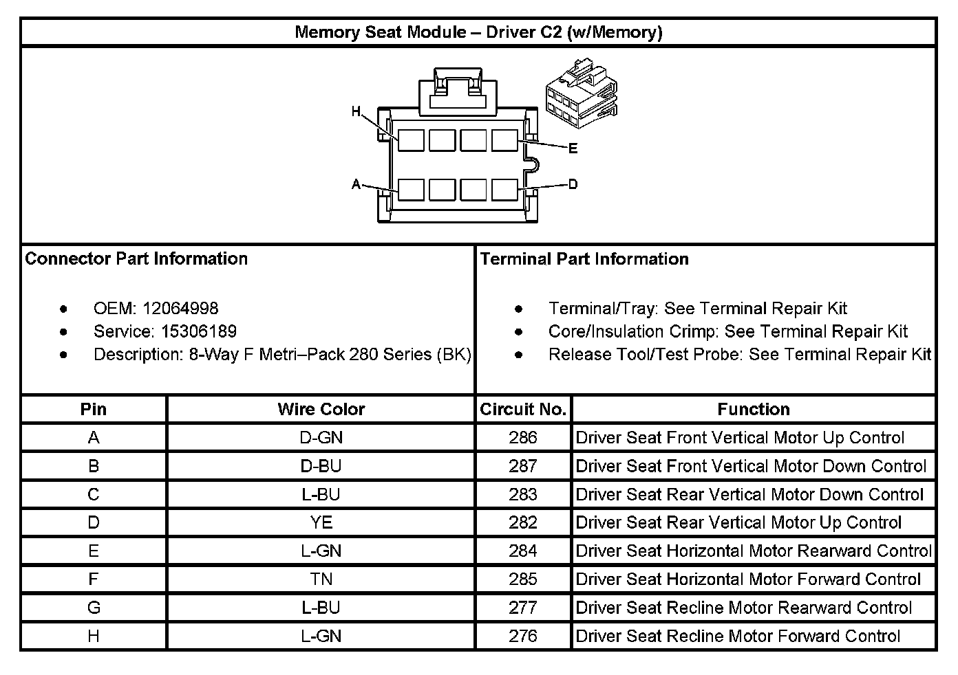 Memory Seat Module - Driver C2 (w/Memory):