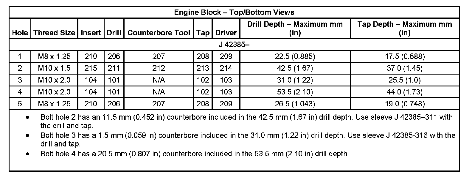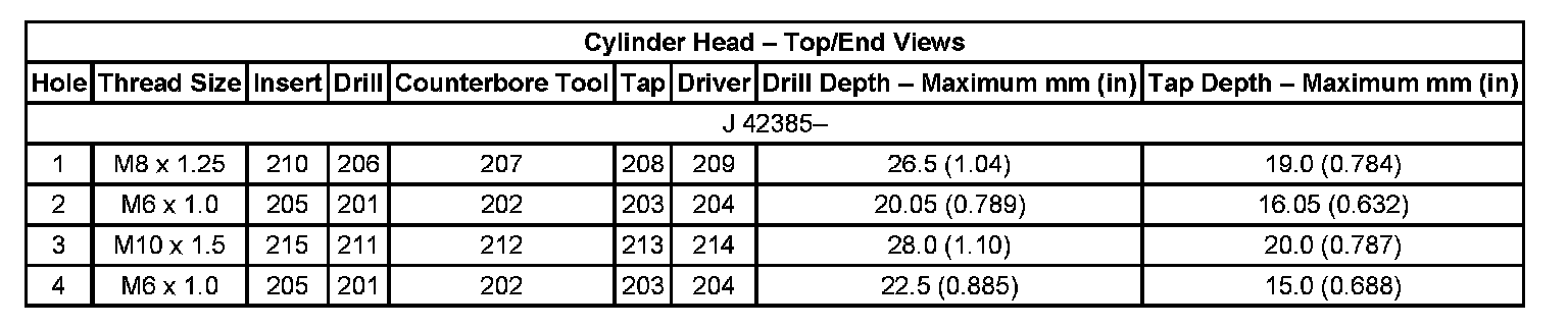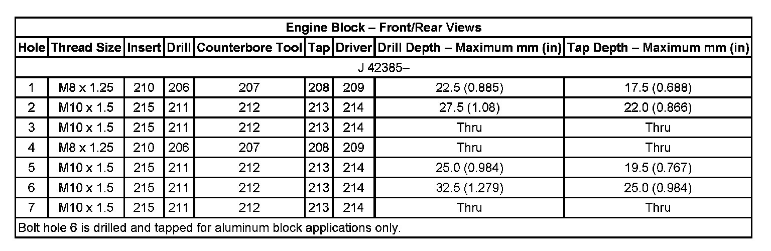 Thread Repair Specifications Engine Block: