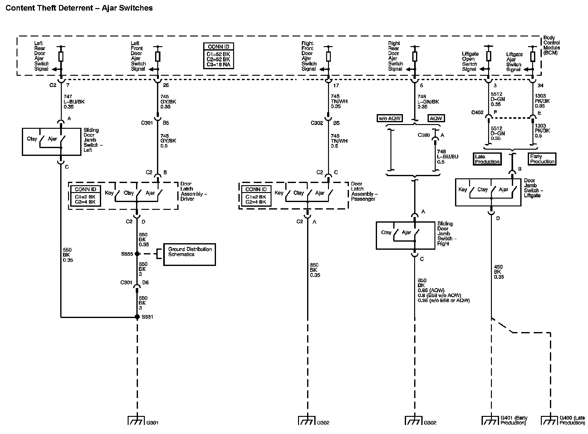 Location: The locations for the Connectors, Grounds, Splices, and Grommets shown within these diagrams can be found via their numbers at Vehicle Locations. Locations