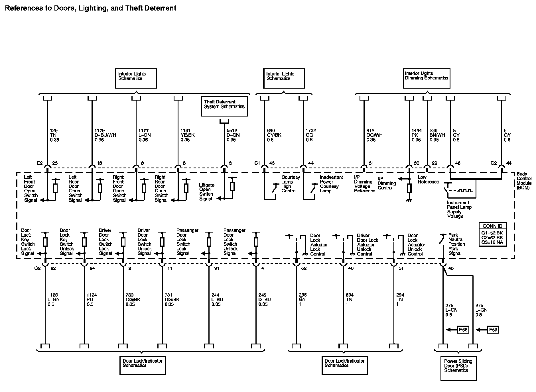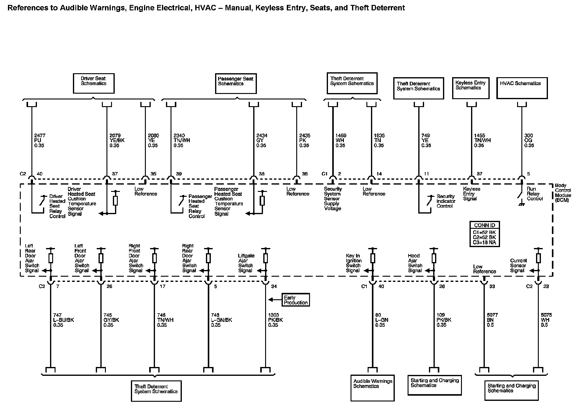 Location: The locations for the Connectors, Grounds, Splices, and Grommets shown within these diagrams can be found via their numbers at Vehicle Locations. Locations