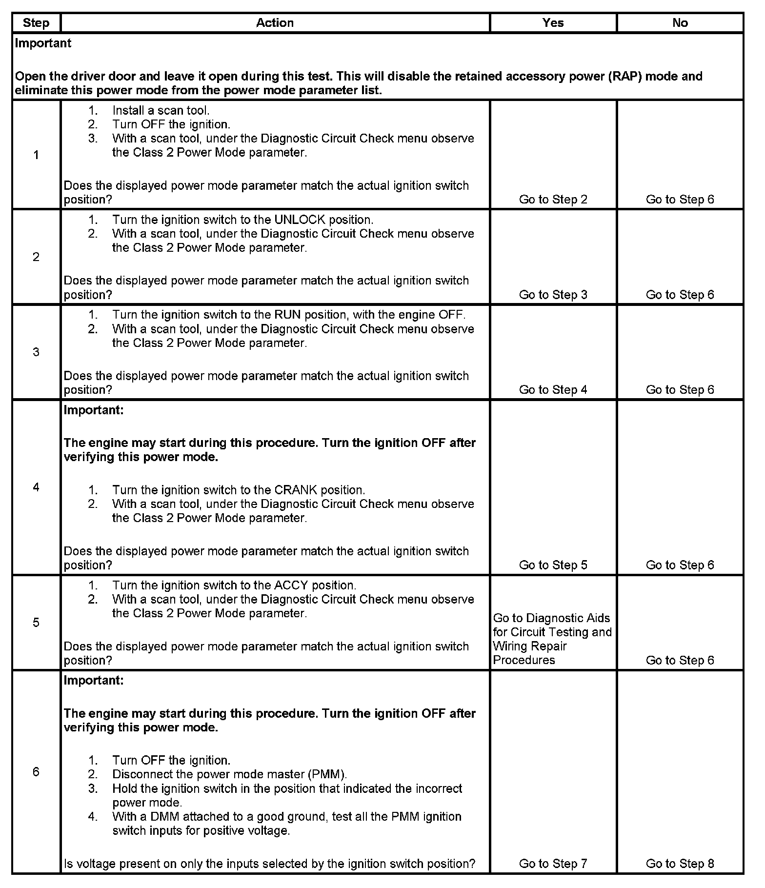 Normal vehicle serial data communications and module operations will not begin until the system power mode has been identified. Discrete wires from the ignition switch contacts are monitored by a module which acts as the power mode master (PMM) in order to determine the correct power mode. The module which is the PMM communicates the system power mode to all modules on the serial data lines. Refer to Body Control System Description and Operation to identify which module is the PMM and the applicable power mode look up table.