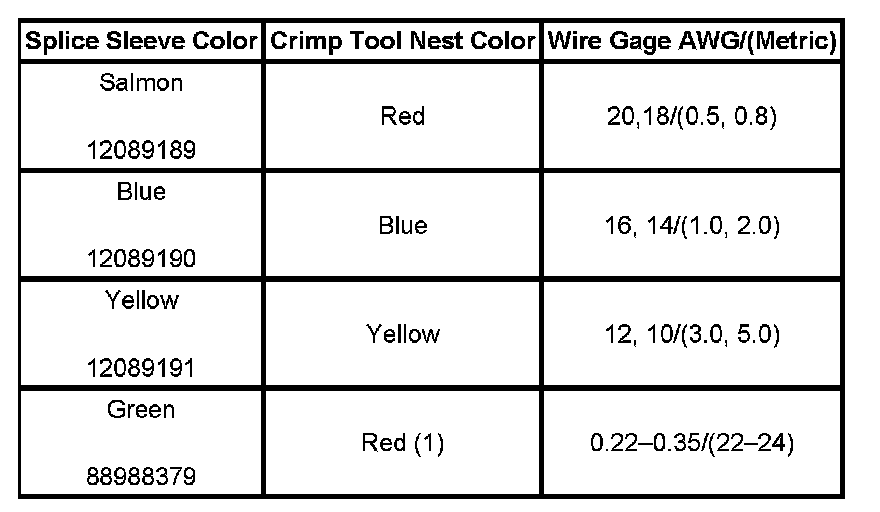 5. Select the proper duraseal splice sleeve (2) and the required crimp nest tool, refer to the Crimp and Seal Splice Table.