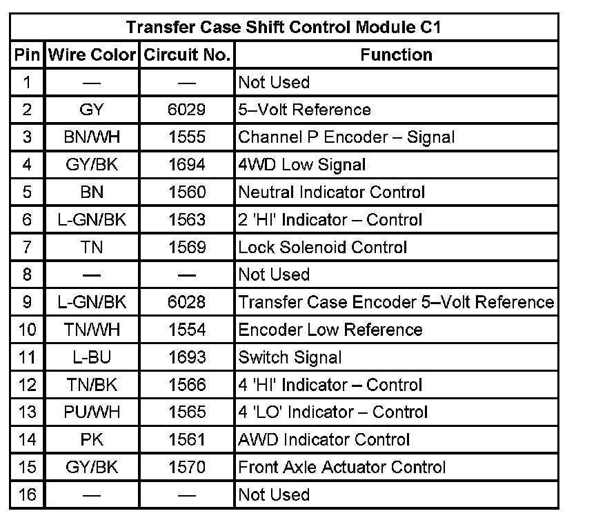 Transfer Case Shift Control Module C1: