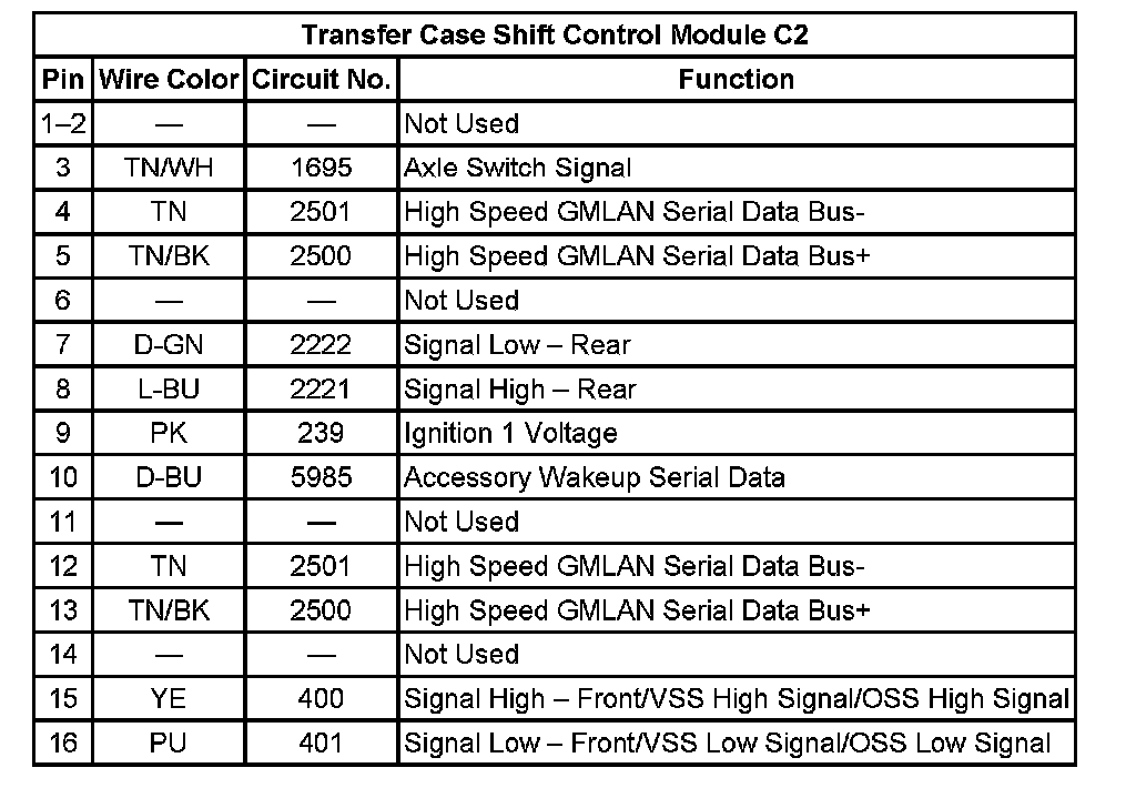 Transfer Case Shift Control Module C2: