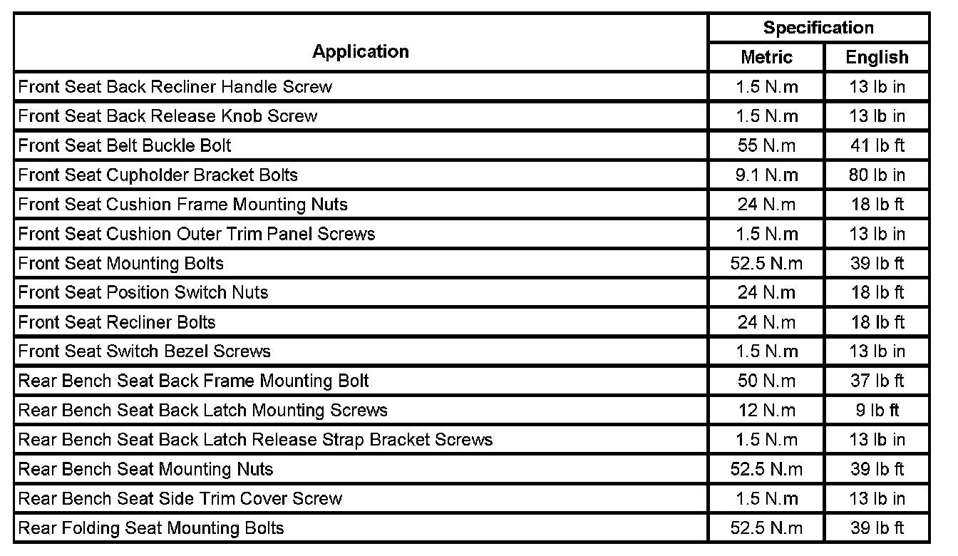 Seats: Specifications