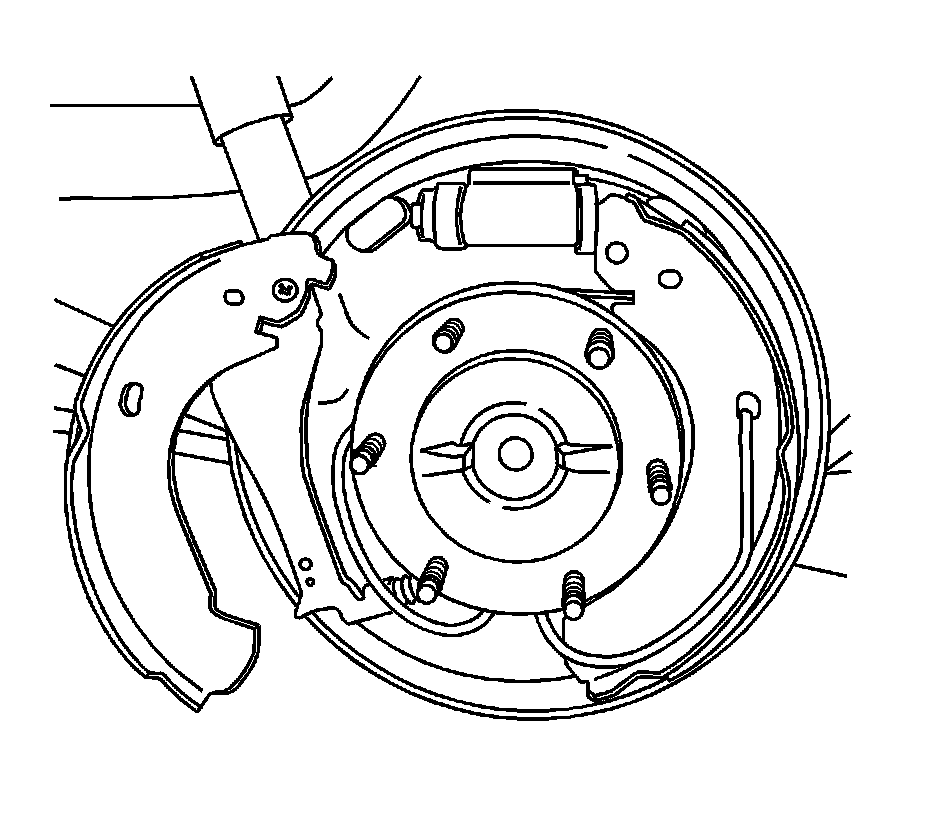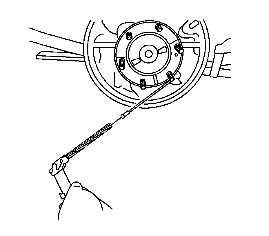 Important: When removing the park brake cable from the lever, the park brake return spring will remain attached to the lever. DO NOT remove the return spring from the lever. If the return spring becomes separated from the lever, replace the rear brake shoes. The lever is part of the brake shoe assembly.