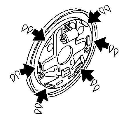 Important: Ensure that the retractor spring is properly seated in the retaining bracket at the bottom of the backing plate.
