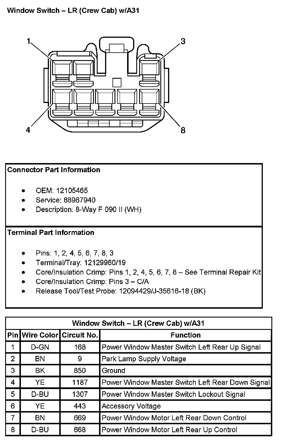 Window Switch - LR (Crew Cab) (With RPO Code A31):