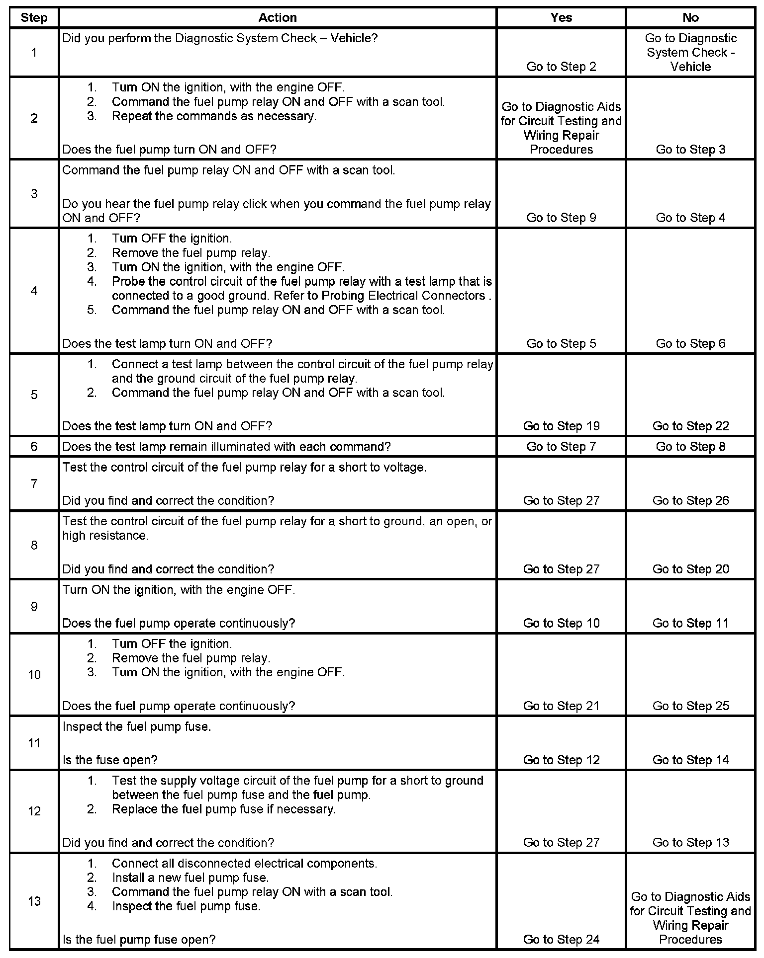Fuel Pump Electrical Circuit Diagnosis