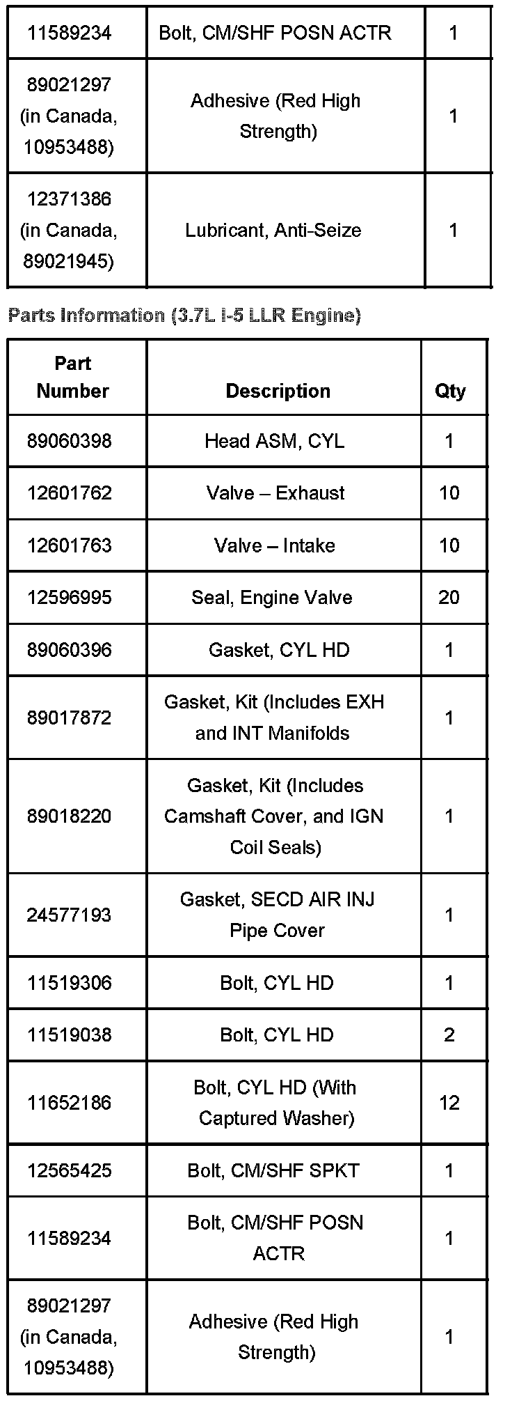Information On New In-Vehicle Service Procedure for Removal/Installation of LLV, LLR Cylinder Head