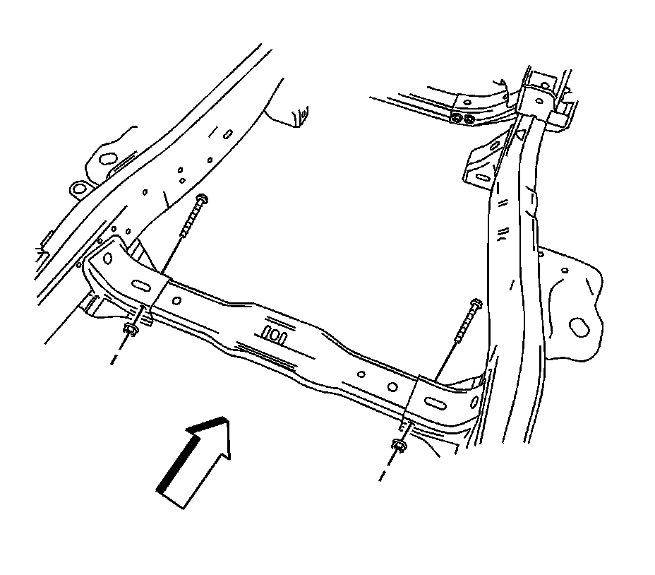 2. Loose install the horizontal nuts and the bolts retaining the transmission support to the frame.