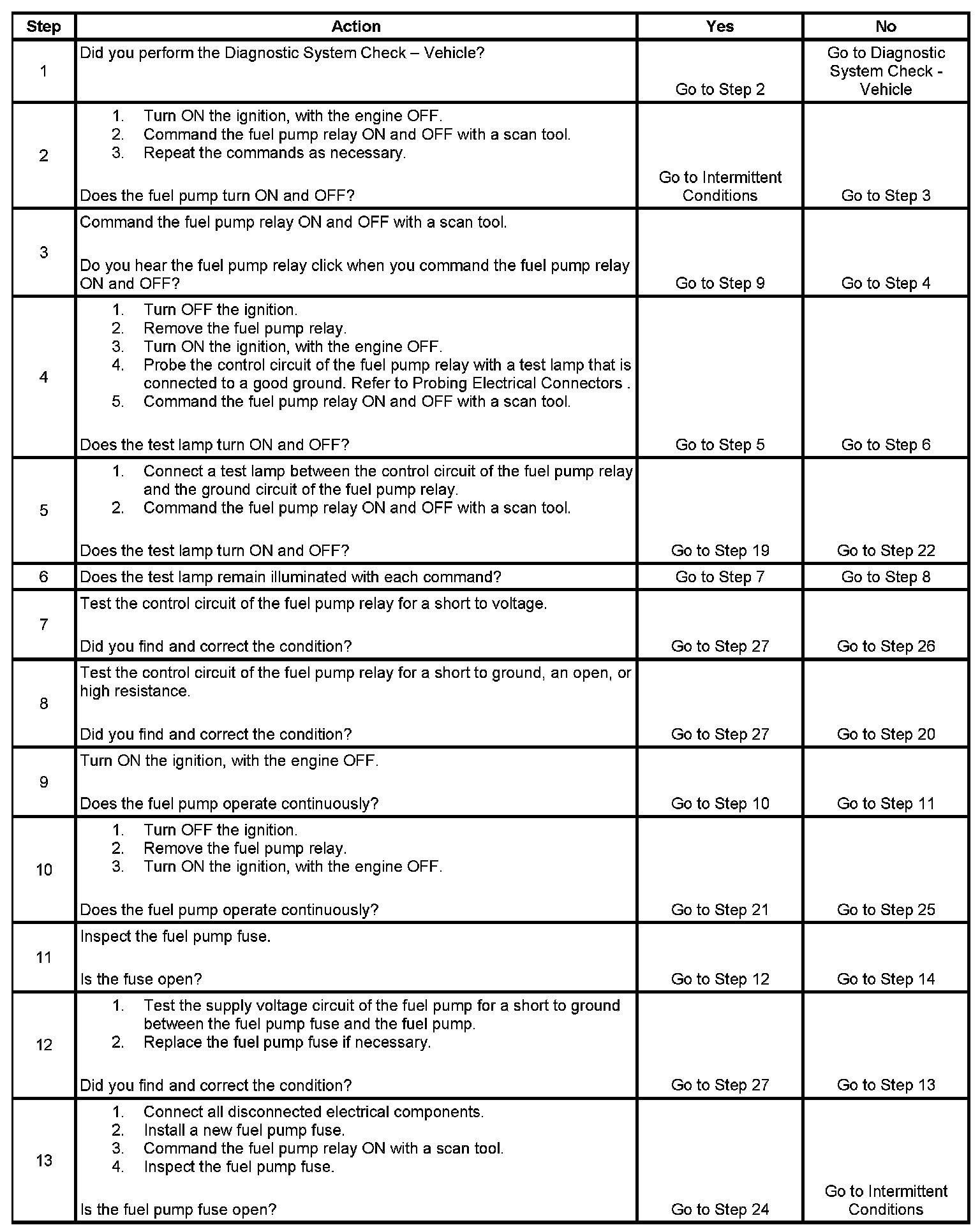 Fuel Pump Electrical Circuit Diagnosis
