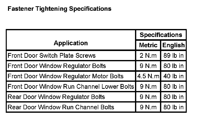 Fastener Tightening Specifications: