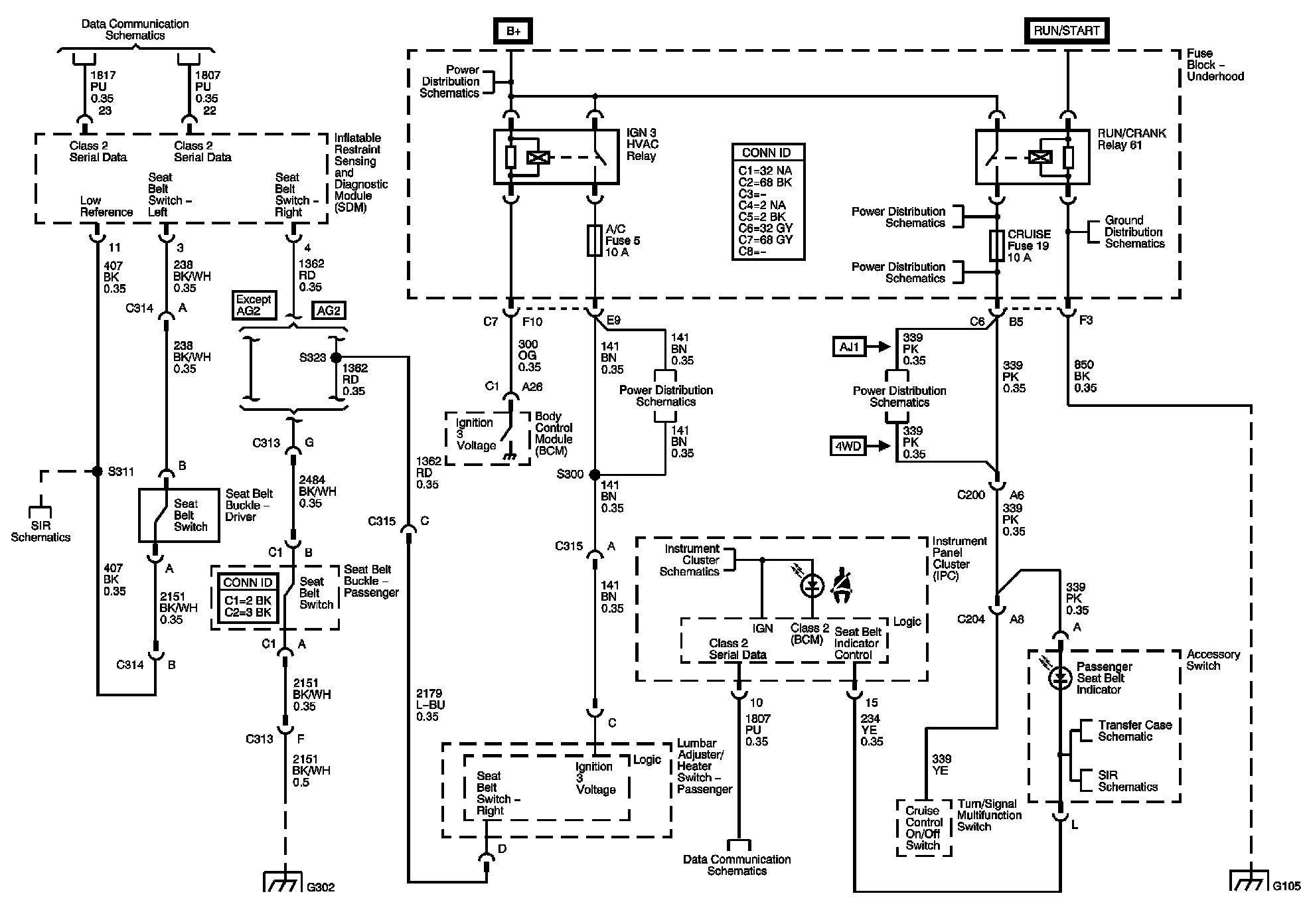 The locations for the Connectors, Grounds, Splices, and Grommets shown within these diagrams can be found via their numbers at Vehicle Locations.
