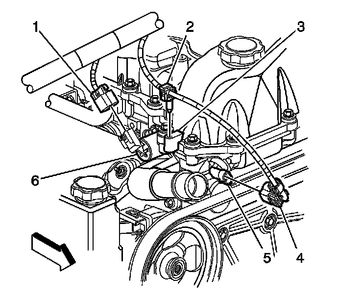 1. Disconnect the engine wiring harness electrical connector (4) from the camshaft position (CMP) sensor (5).