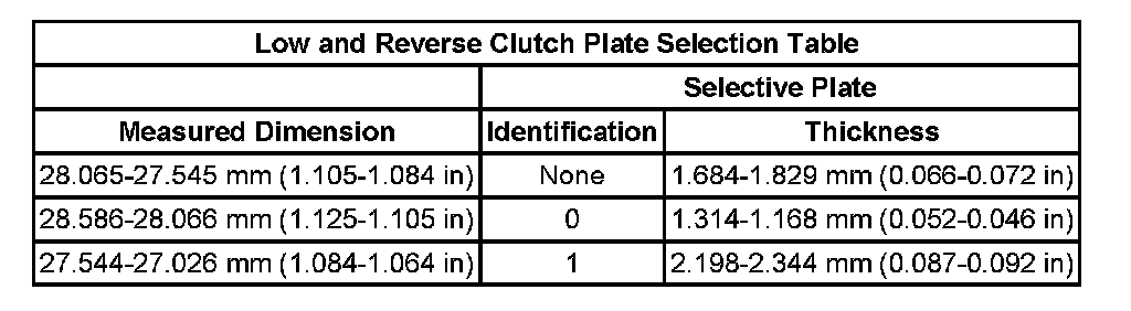 Low and Reverse Clutch Spacer Plate Selection: