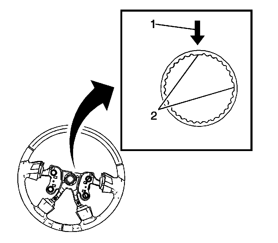 3. Ensure that proper tooth (2) alignment to the steering wheel and the steering shaft has been achieved.