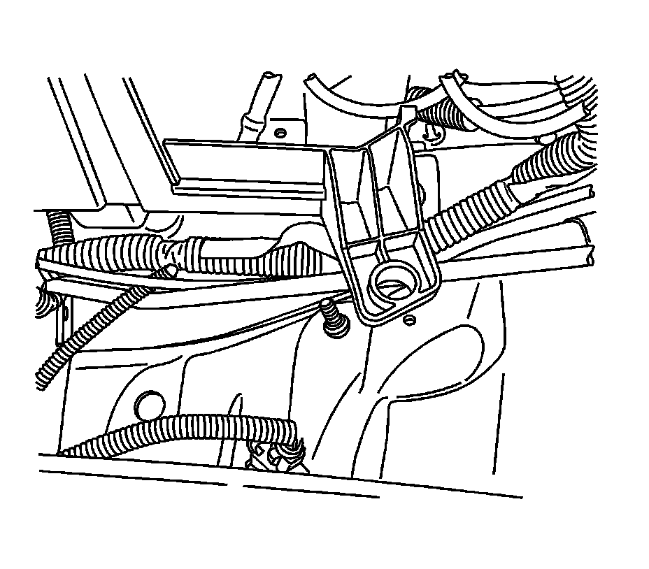 8. Remove the nut retaining the liquid line to the strut tower.