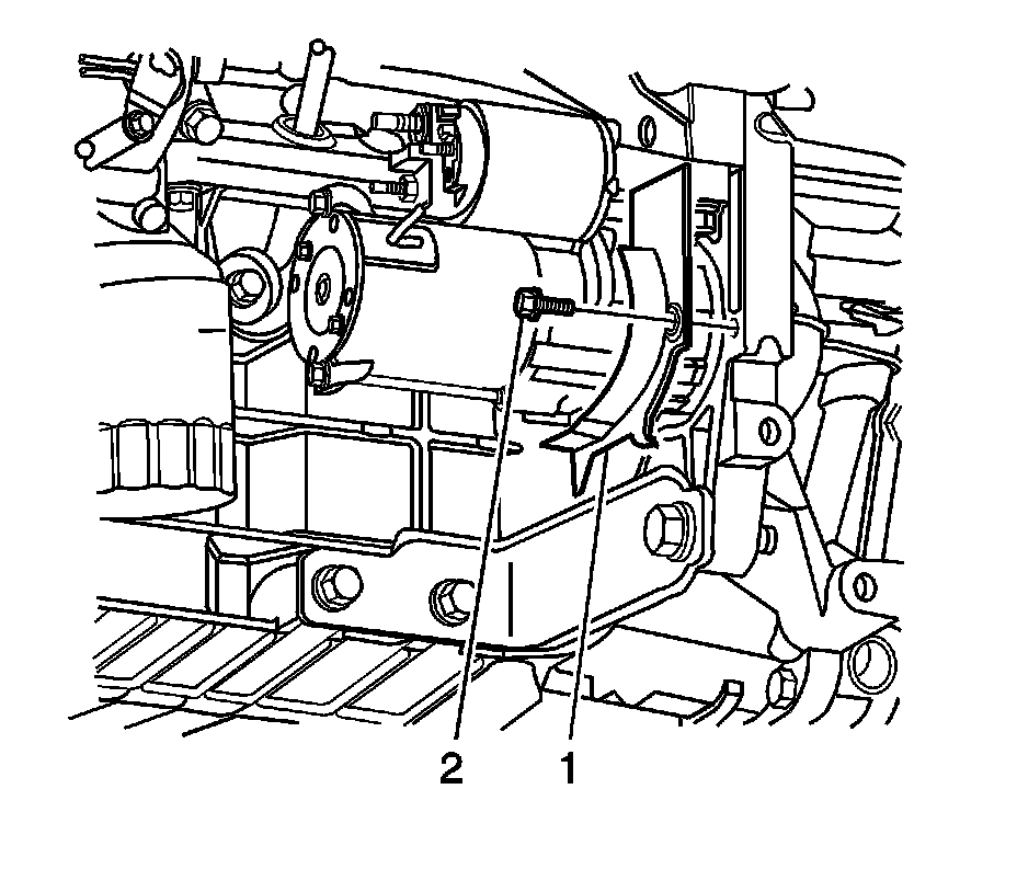 5. Remove the torque converter cover bolt (2).