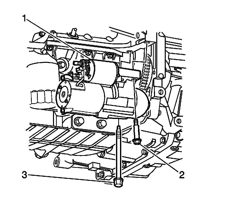 2. Install the starter motor bolts (2, 3).