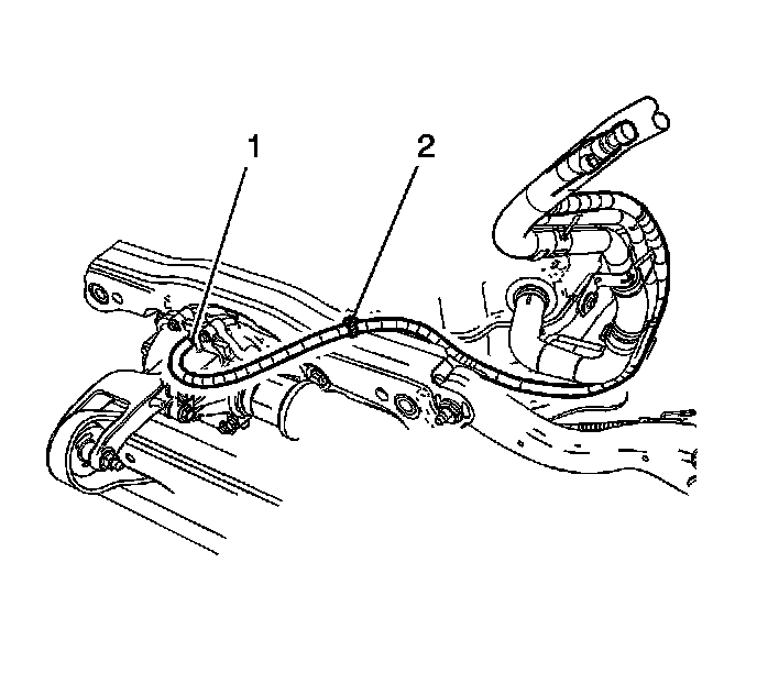 2. Secure the vent hose retaining clip (2) along the top of the rear suspension crossmember.