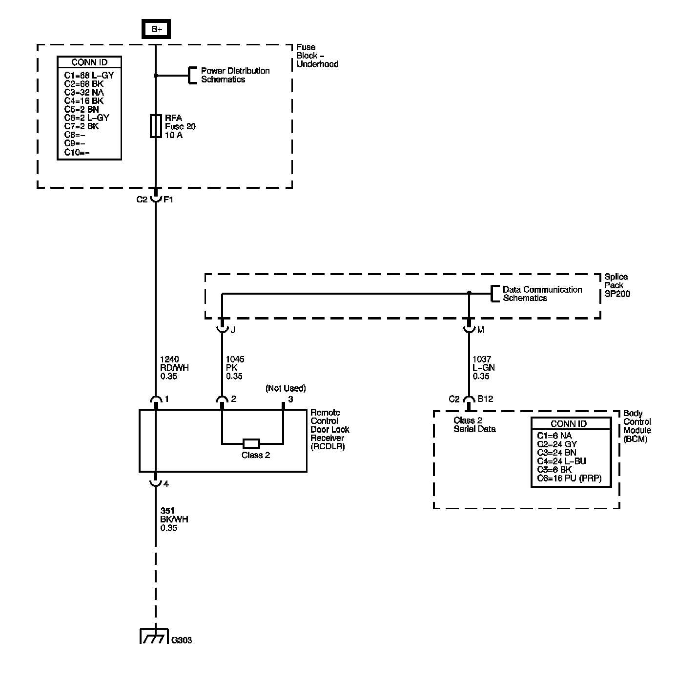 The locations for the Connectors, Grounds, Splices, and Grommets shown within these diagrams can be found via their numbers at Vehicle Locations.