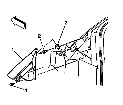 1.Remove the upper fender filler panel applique. Refer to Windshield Frame Filler Panel Applique Replacement Service and Repair .