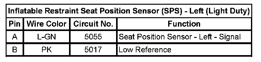 Inflatable Restraint Seat Position Sensor (SPS) - Left (Light Duty)