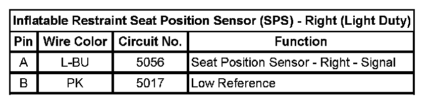 Inflatable Restraint Seat Position Sensor (SPS) - Right (Light Duty)