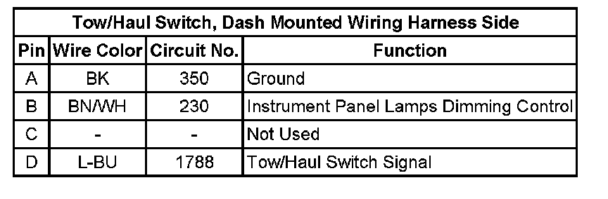 Tow/Haul Switch, Dash Mounted Wiring Harness Side: