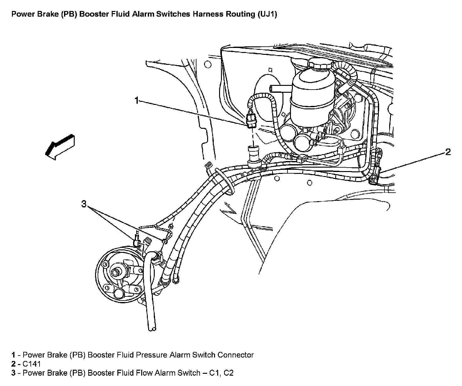 Power Brake (PB) Booster Fluid Alarm Switches Harness Routing (With RPO Code UJ1):
