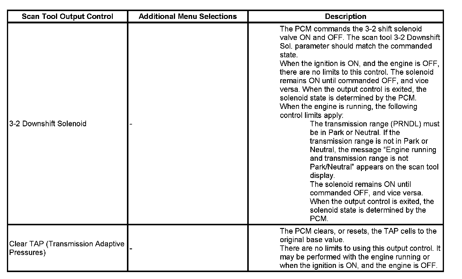 Scan Tool Output Controls