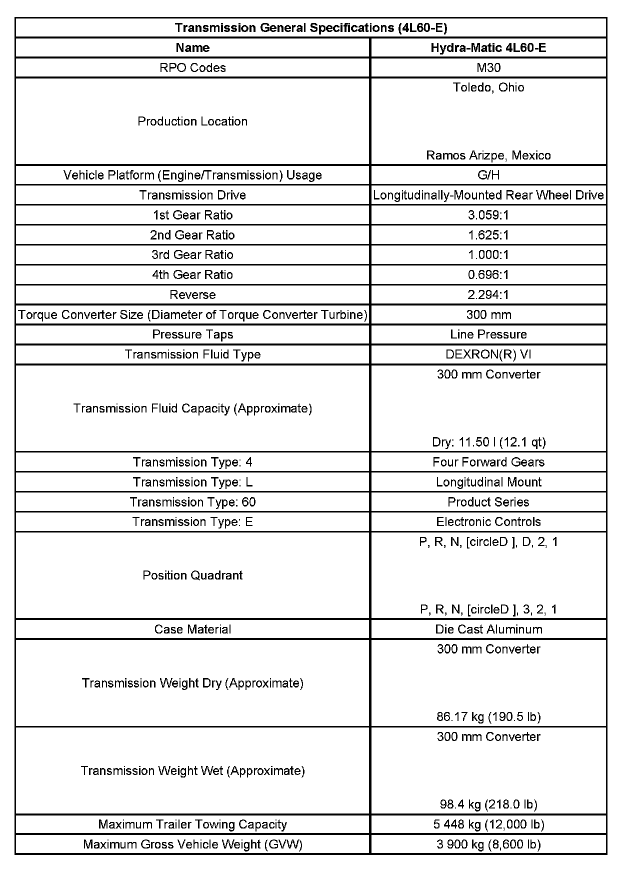 Transmission General Specifications (4L60-E):
