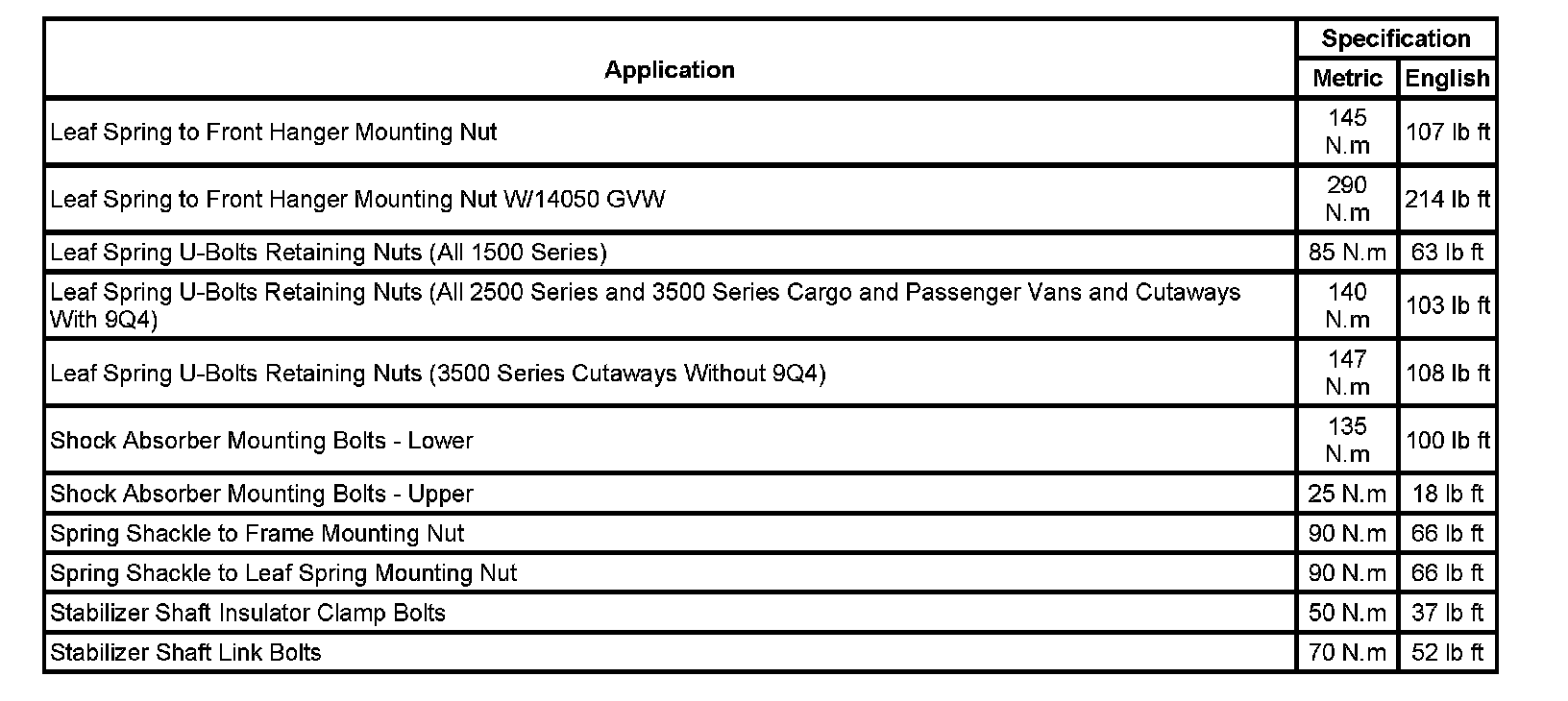 Fastener Tightening Specifications: